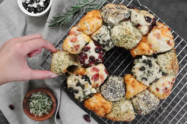 Saffron Wreath Bread with Prosciutto Gruyere and Pesto