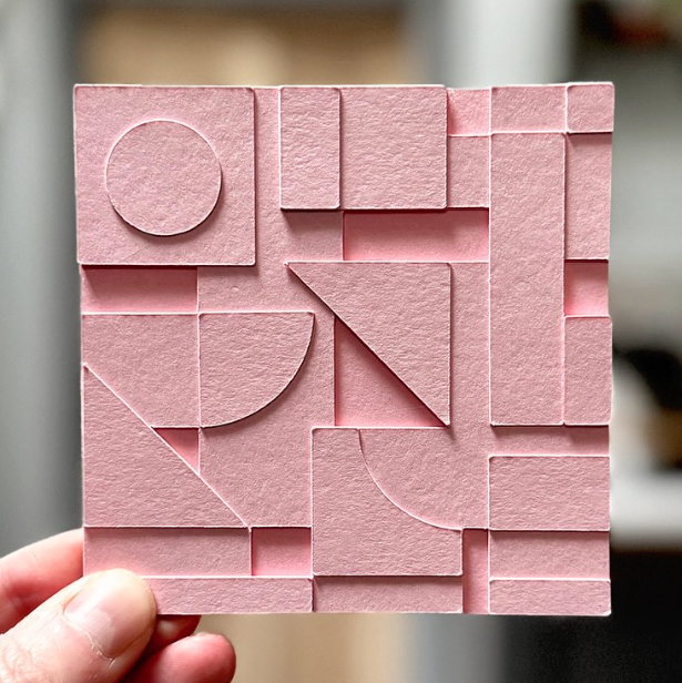 While researching for my Abstract Art blog post I discovered a lot of amazing artists and Sean Thornhill was one of them. I love the simplicity of the style of these artworks, but they are deceptively simple because anyone who has tried to create abstract artworks themselves know that this balance is very difficult to achieve. I also love the fact that the artworks keep the same style across different mediums, built up in 3D, pressed into paper, framed, stamped and painted. I love this use of creativity and something I used to play with in my own art, taking the same image or idea and recreating it in different ways to find which one left best.